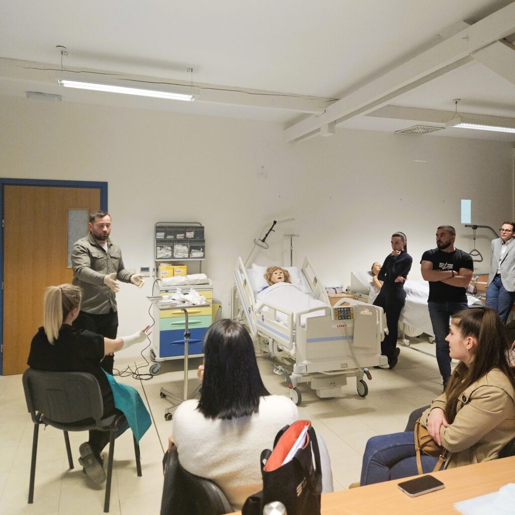 Održano je i predavanje „Sigurna primjena i skrb za pacijente s centralnim venskim kateterom“, koje je održala Gabriela Sopek, mag. med. techn. iz Kliničke bolnice Sveti Duh. Studenti su se upoznali s važnosti aseptične tehnike, pravilne higijene ruku, primjene sterilne opreme, dezinfekcije mjesta insercije te prevencije komplikacija i infekcija povezanih s centralnim venskim kateterom. 💉