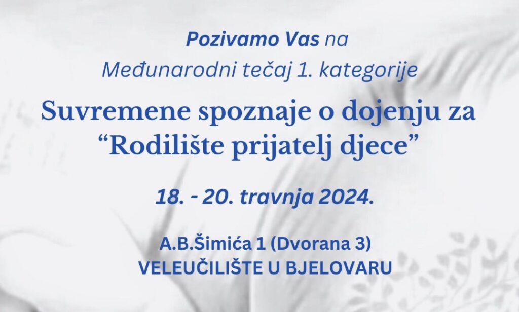Na našem Veleučilištu se održava Međunarodni tečaj 1. kategorije, naziva Suvremene spoznaje o dojenju za “Rodilište prijatelj djece” koji se održava od 18. do 20. 4. 2024.